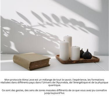 Le nom de ce protocole : Alma leve signifie âme légère en portugais et cela résume l’intention donné à ce soin énergétique et du corps.