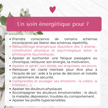 C'est un Soin énergétique dans lequel nous nettoyons, harmonisons et rechargeons vos énergies.